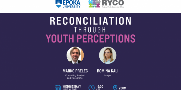 RYCO Local Branch Office in Albania and Epoka University are organizing the third event within the series of the reconciliation seminars “Can Old Gloves Fit Young Hands: Learning about the Western Balkans from a Different Perspective”. The third seminar, titled “Reconciliation through Youth Perceptions” will take place online, on 16 June 2021, at 3:00 p.m.